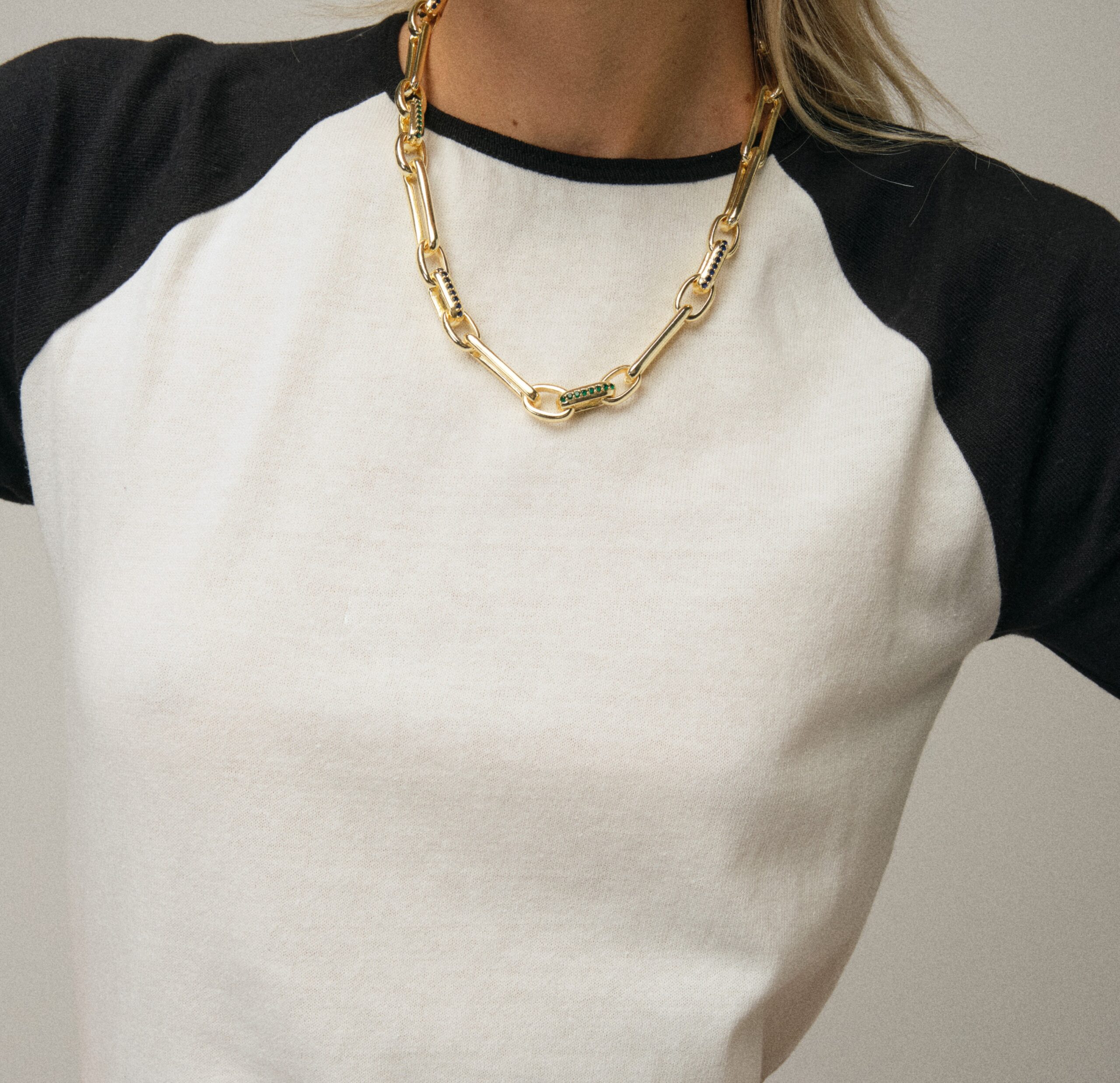 Yeşil ve mavi taş detaylı karışık zincir kolye