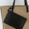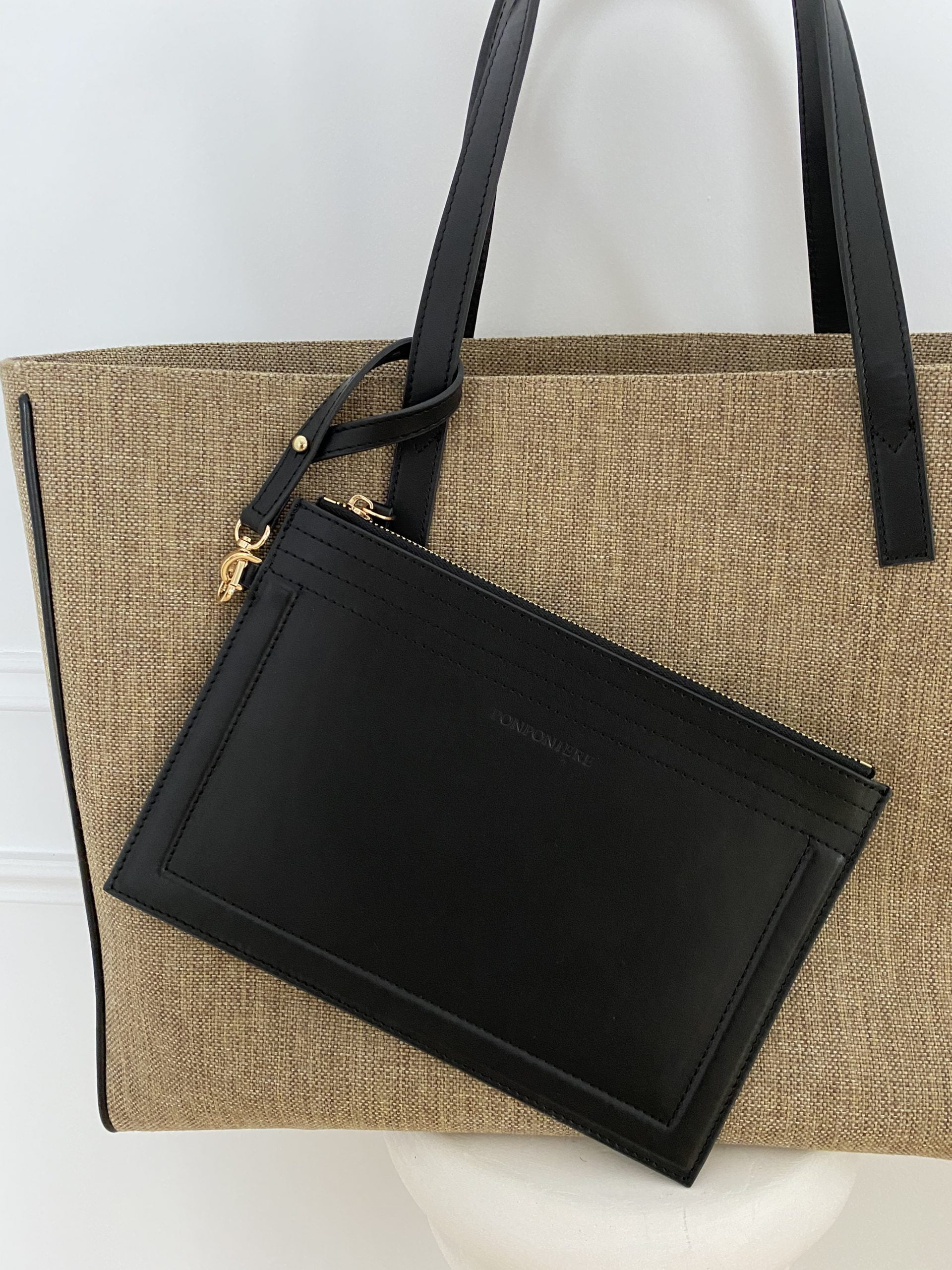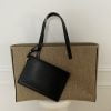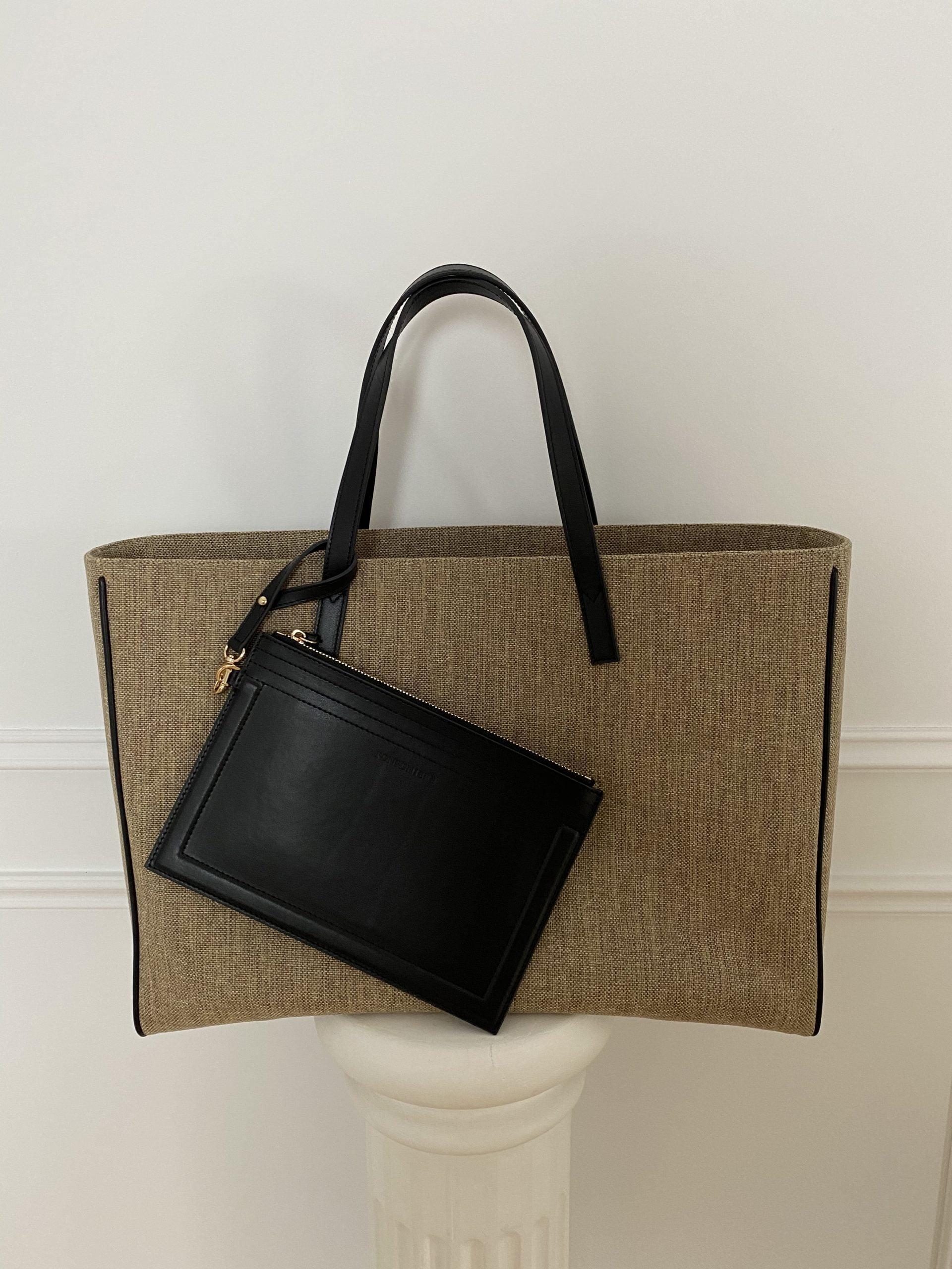- Keten karışımlı kumaş ve deri detaylı büyük çanta
